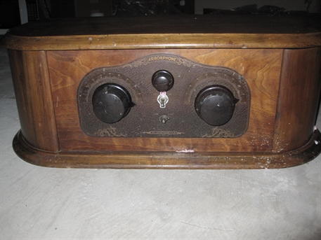 The instruction card inside the radio indicates the radio is an Arborphone AC 37.  This is a totally different radio than the Arborphone 37 AC.  This radio has the same cabinet as the more common Model 27.  As the name implies the radio is made to run on AC.  I have not spent much time with this radio but it has an AC power cord.  There is a transformer that supplies the filiament power for the tubes and an auxillary AC power outlet that is meant to power and optional B eliminator.  The B voltages could also be supplied via batteries if desired.