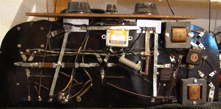 Above is a photo of the underside.  There is a couple of high wattage resistors someone added to make up for an original resistor that is open.  The large 1 uF capacitor also does not appear to be original.
